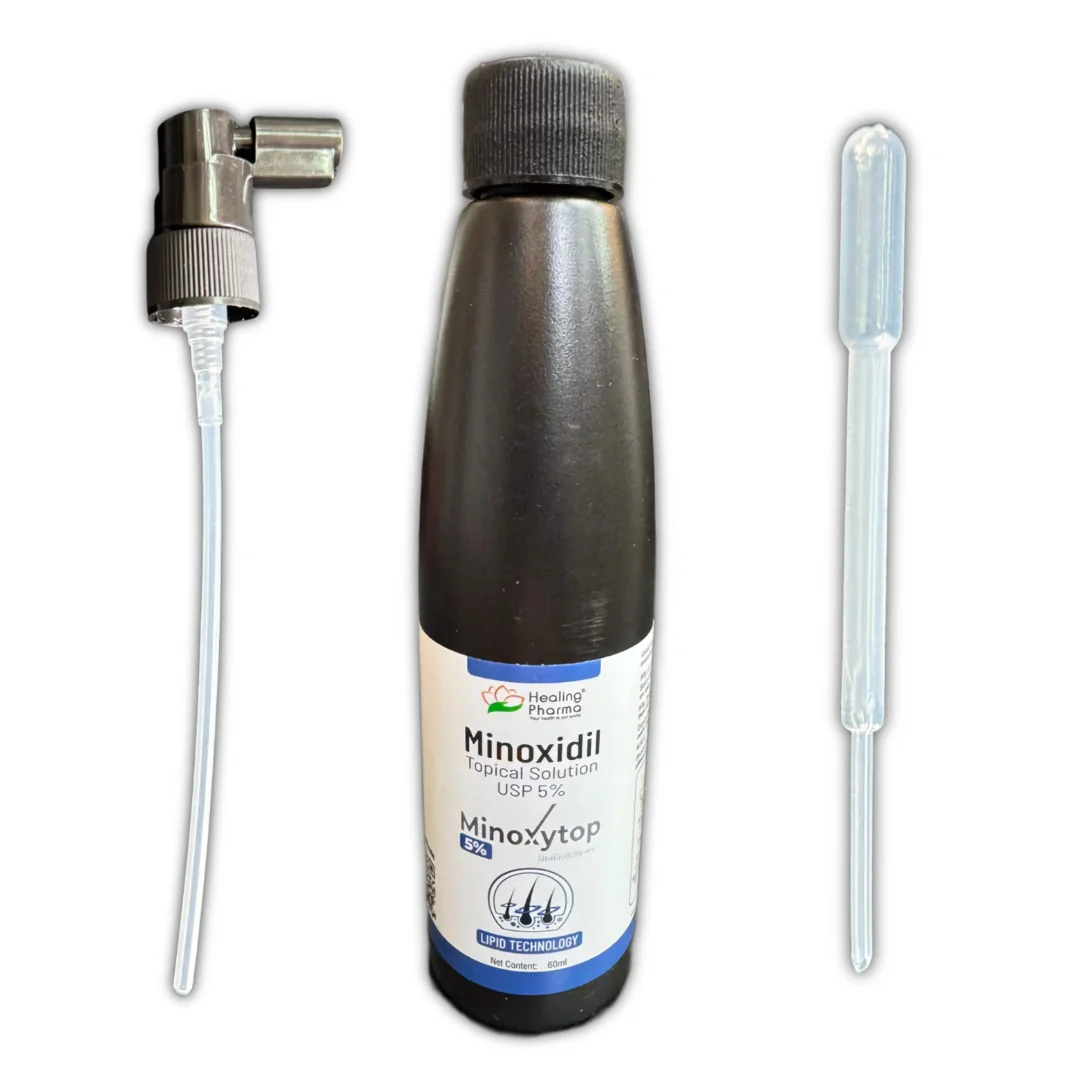 Medical-Grade and USP-standard topical solution designed for scalp use 5% w/v strength supplied in a 60 ml bottle for regular application.
